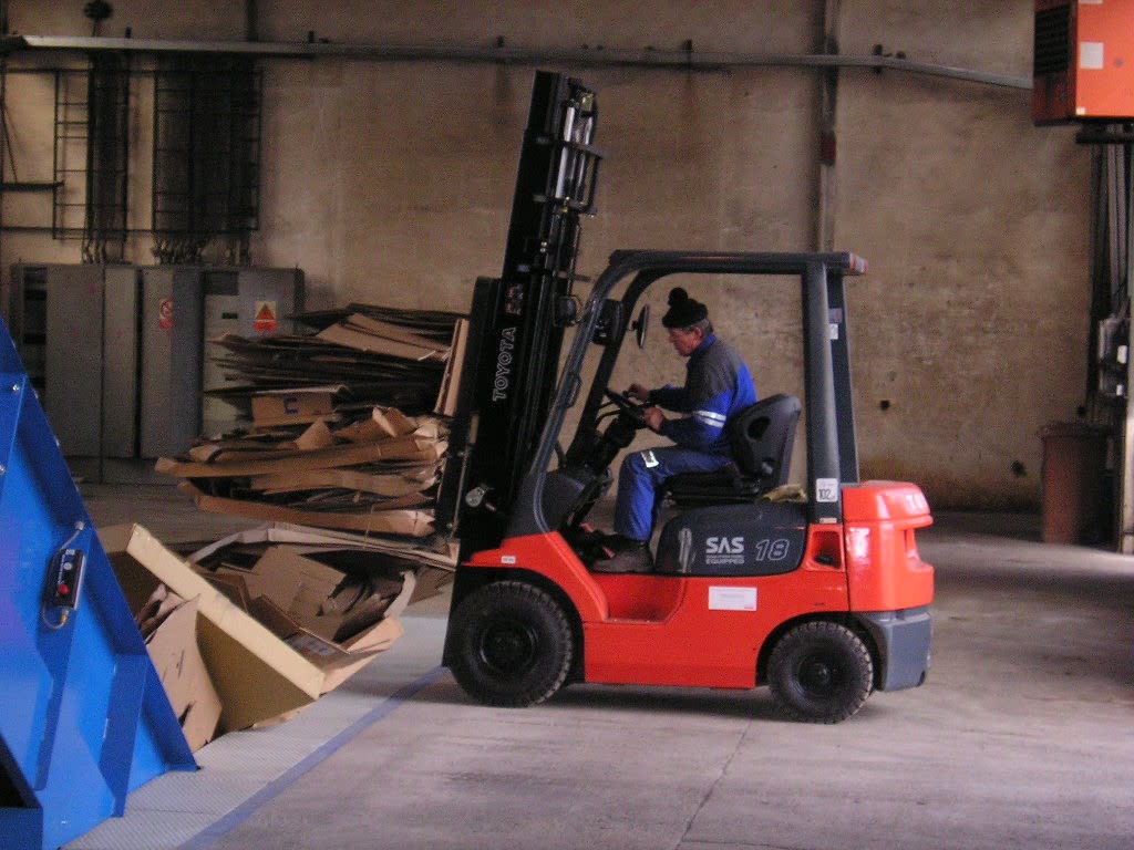 - Vytříděný odpad se dále zpracovává – lisuje se do balíků na hydraulických lisech.